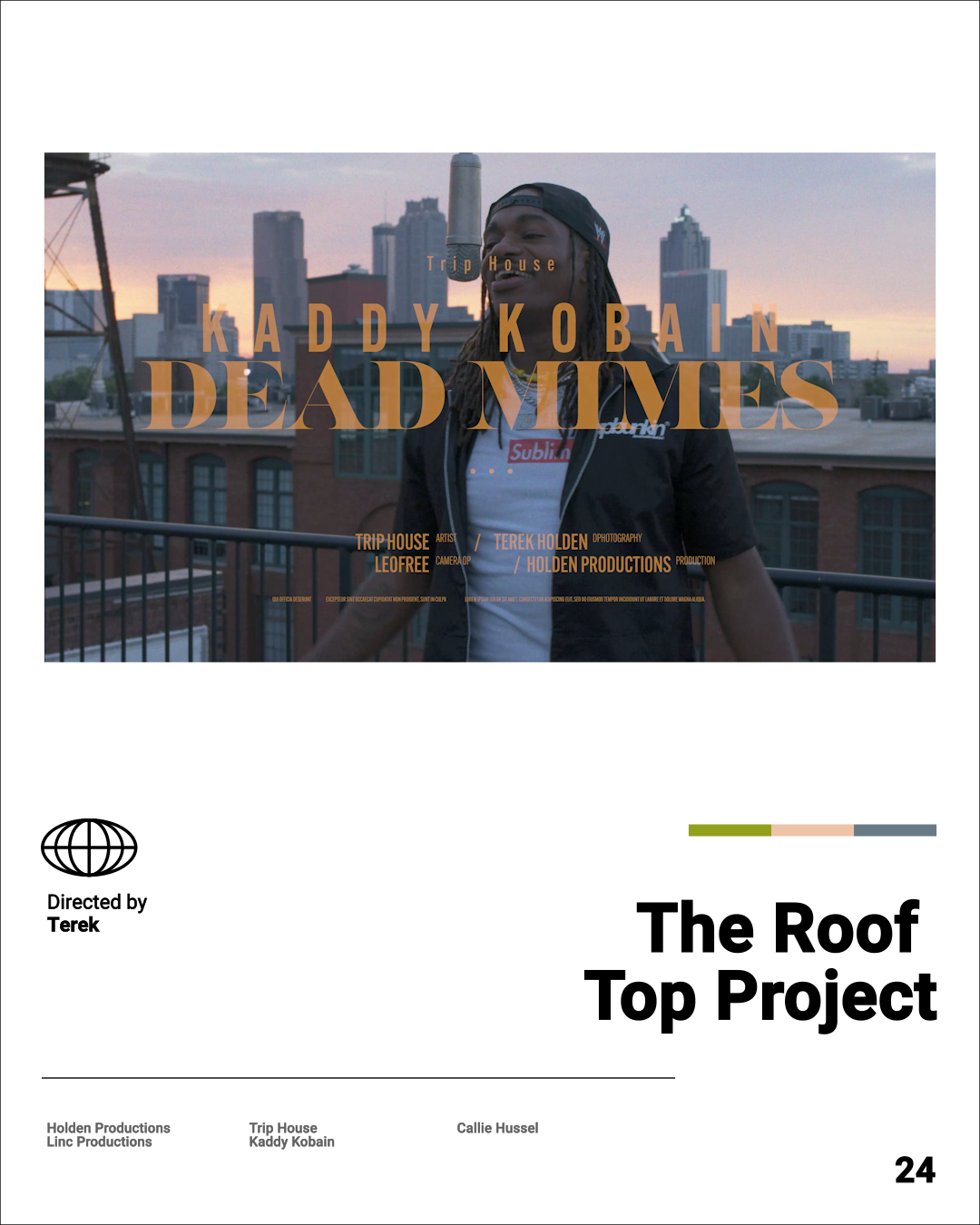 Cover image of a documentary or project titled 'The Roof Top Project' featuring Kaddy Kobain, with a city skyline in the background, a person with long dreadlocks, a backwards cap, and a black jacket, standing on a rooftop.